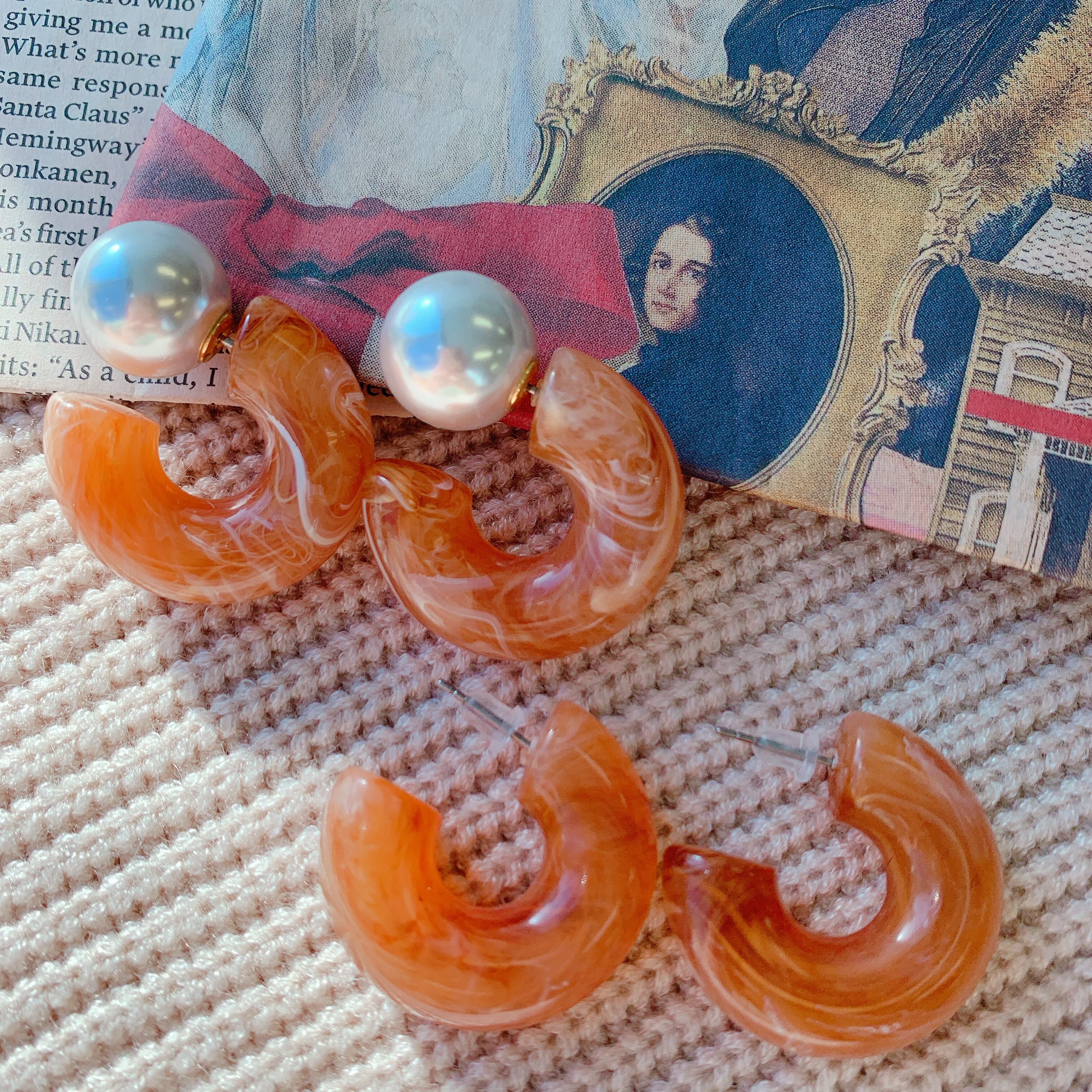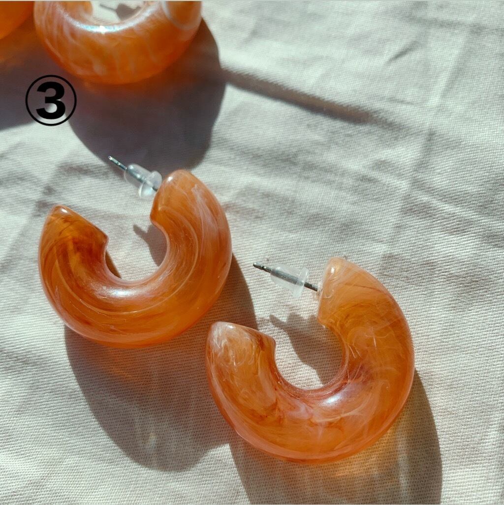 飴のようなチュルリンとした光沢が可愛いアクリルフープのピアスです。