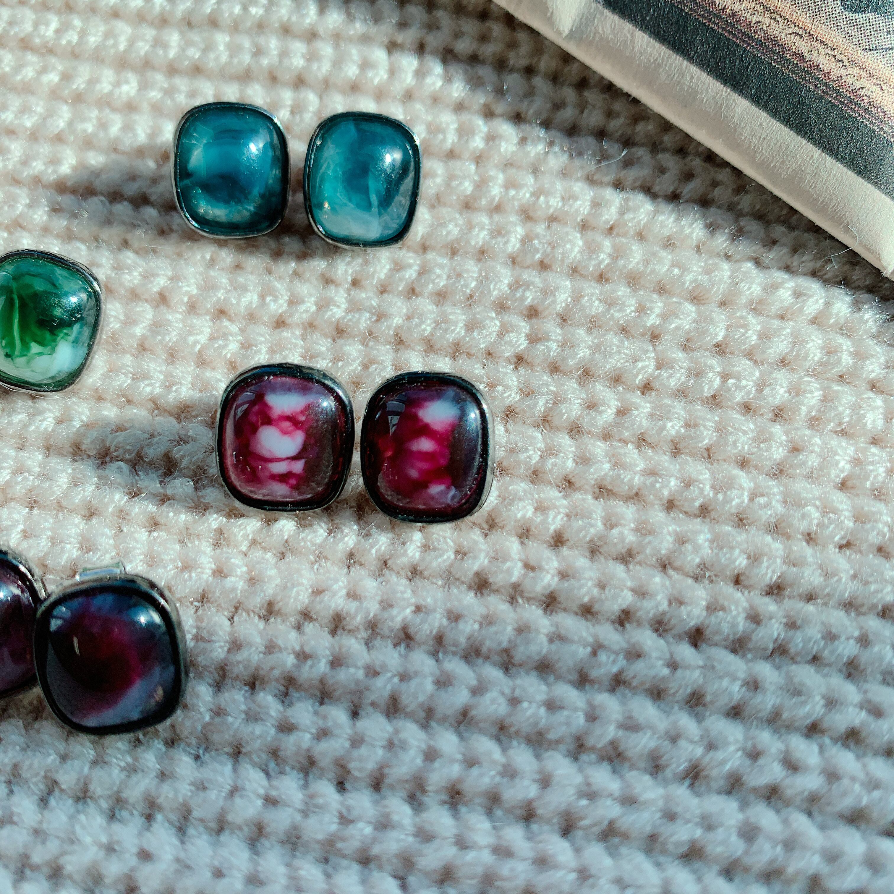 小ぶりで深みのあるマーブルカラーが印象的なピアスのご紹介です。